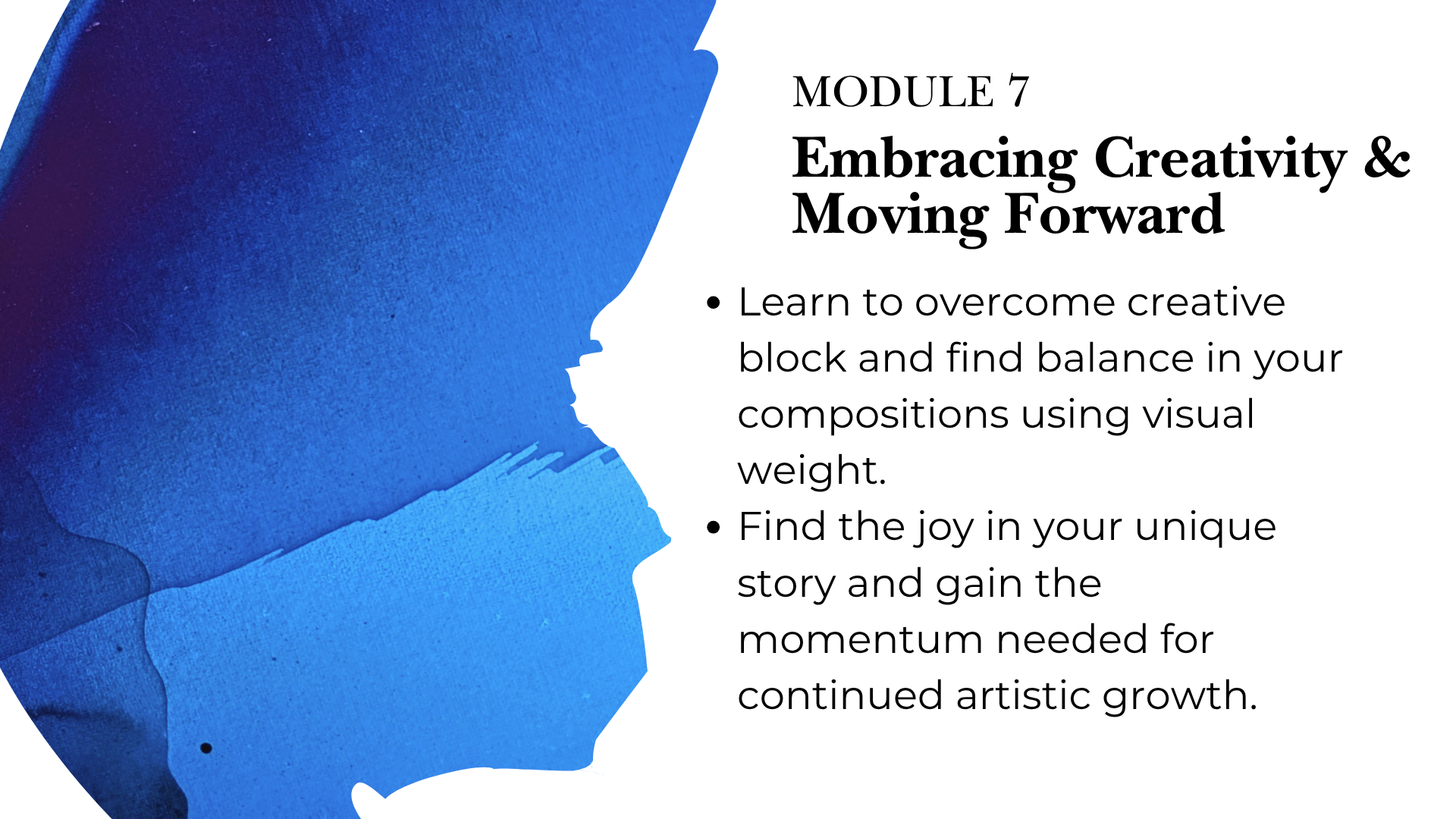 Whether you're an absolute beginner looking for an expressive new hobby or a painter ready to master advanced techniques, this course is for you!